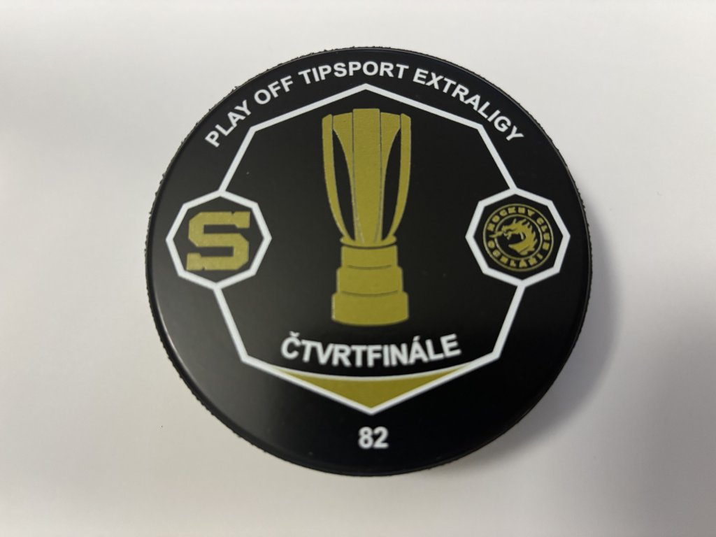 Limitované (číslované) puky z rezervy, připravené na sérii čtvrtfinále play-off mezi týmy Sparta Praha a Oceláři Třinec. Vyrobeno bylo omezené množství puků na sérii, dotisk není možný. Fotka je ilustrační, k dispozici jsou různé (náhodné) limitace.
